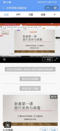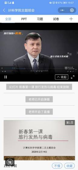 2月14晚19:00,完美电竞采用雨课堂平台召开了本学期第二次全体员工网络班会,共同观看学习张文宏教授的微课堂:新春第一课《旅行发热与病毒》。公司党委副书记颜学俊、全体辅导员、部分班主任及2000余名本科生、研究生通过网络参加了本次学习。